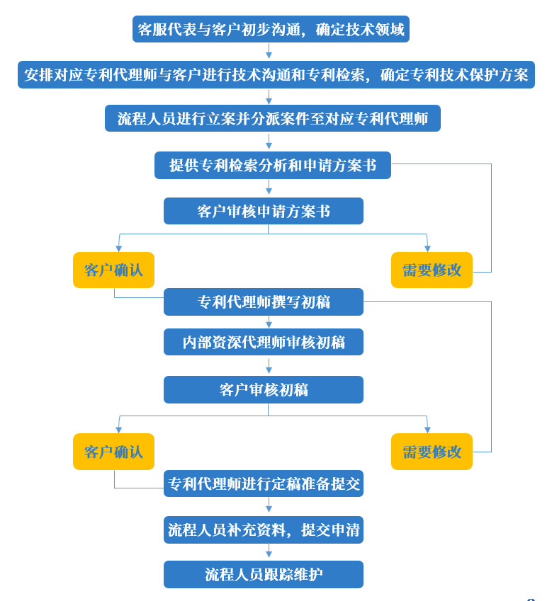 为客户提供一站式、环球专利商标全产业链服务,包括专利撰写、专利商标布局、申请、答辩、复审、无效、诉讼、侵权调查、商标撤销、专利交易、专利池构建与运营、商标交易、品牌授权与运营等,技术领域全面覆盖机械、电子、软件、通讯、光学、生化、药学等专业。